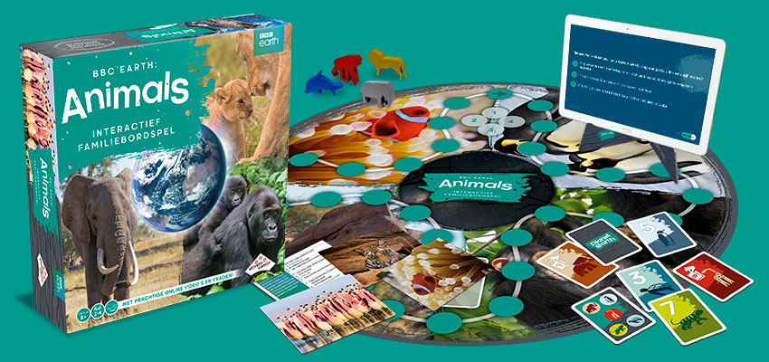 Wil jij je kind op een interactieve manier leren over wilde dieren? Wij hebben in samenwerking met BBC een gloednieuw bordspel op de markt gebracht genaamd BBC Earth: Animals. In dit bordspel krijg je telkens een fragment te zien over een diersoort – bijvoorbeeld een giraffe, gorilla of olifant – en moet je daaropvolgend een vraag beantwoorden. De vragen zijn zowel leerzaam als ludiek, waardoor je kind op vermakelijke wijze kennis verwerft over de natuur. Aan de hand van de antwoorden die je geeft, verdien je kaartjes. Die kaartjes bepalen hoeveel stappen jouw pion vooruit mag op het bord. De speler die na 8 spelrondes op de eerste plek staat, heeft het spel gewonnen.