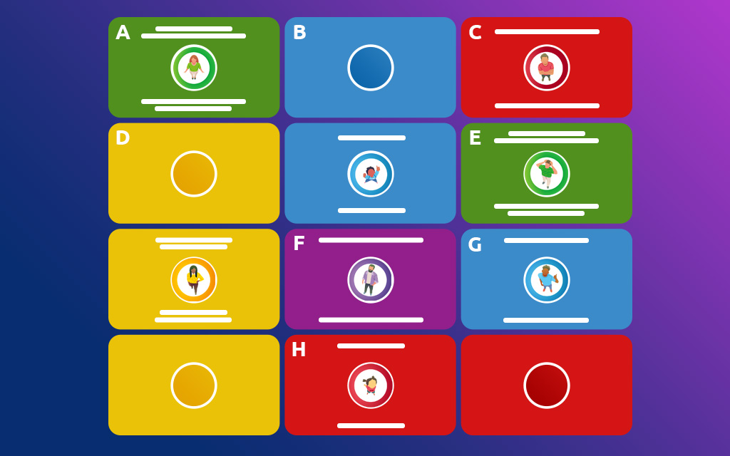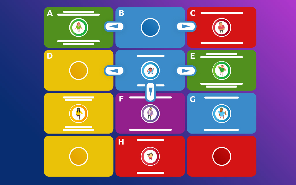 • Duel: Pak de kaarten, start de webapp-klok en noem om de beurt woorden die passen bij de categorie en beginnen met de letters van je kaarten. Degene die als eerste door de tijd heen raakt, verliest.